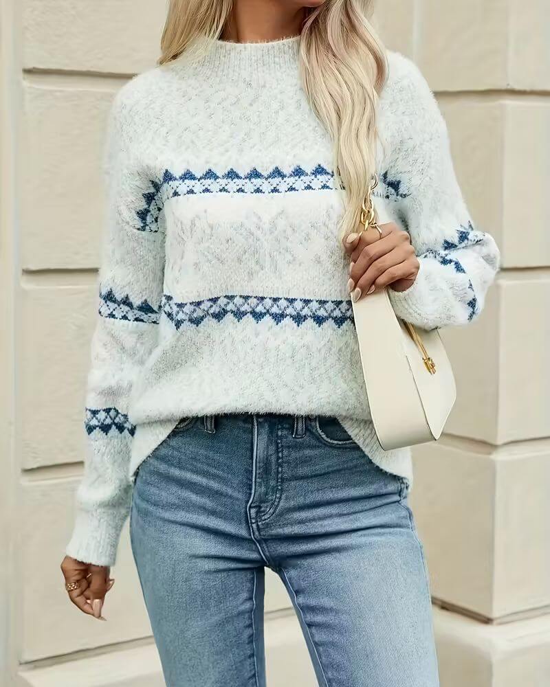 Opplev varme og komfort som omfavner deg hele vinteren med Celine™ Julegenser. Denne genseren er designet for kvinner som ønsker å føle seg myke, komfortable og stilige på kalde dager. Med en avslappet passform og et subtilt, festlig snøfnuggmønster holder Celine™ deg varm uten å begrense bevegelsene – perfekt for å nyte vinteren med stil.