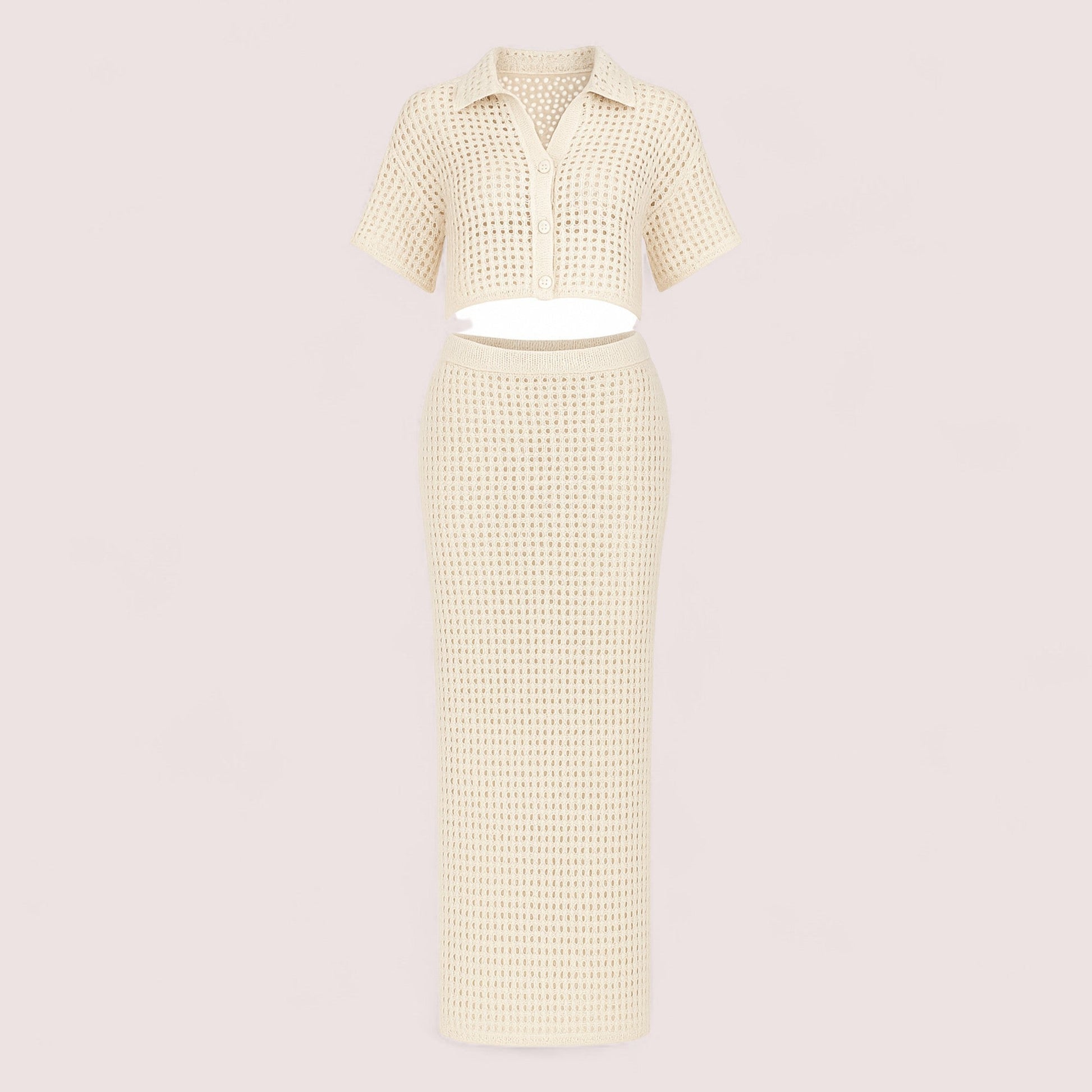 Omfavn sommeren med Elira Summer Set – det perfekte valget for kvinner som ønsker å kombinere moderne stil med uovertruffen komfort. Dette elegante to-delte settet består av en chic triangelsydd topp og et matchende skjørt med raffinert heklet mønster, laget av en fleksibel spandex- og nylonblanding som beveger seg med kroppen. Perfekt for strandturer, avslapning ved bassenget eller en avslappet sommerdag ute, lar Elira Summer Set deg se fantastisk ut med minimal innsats.