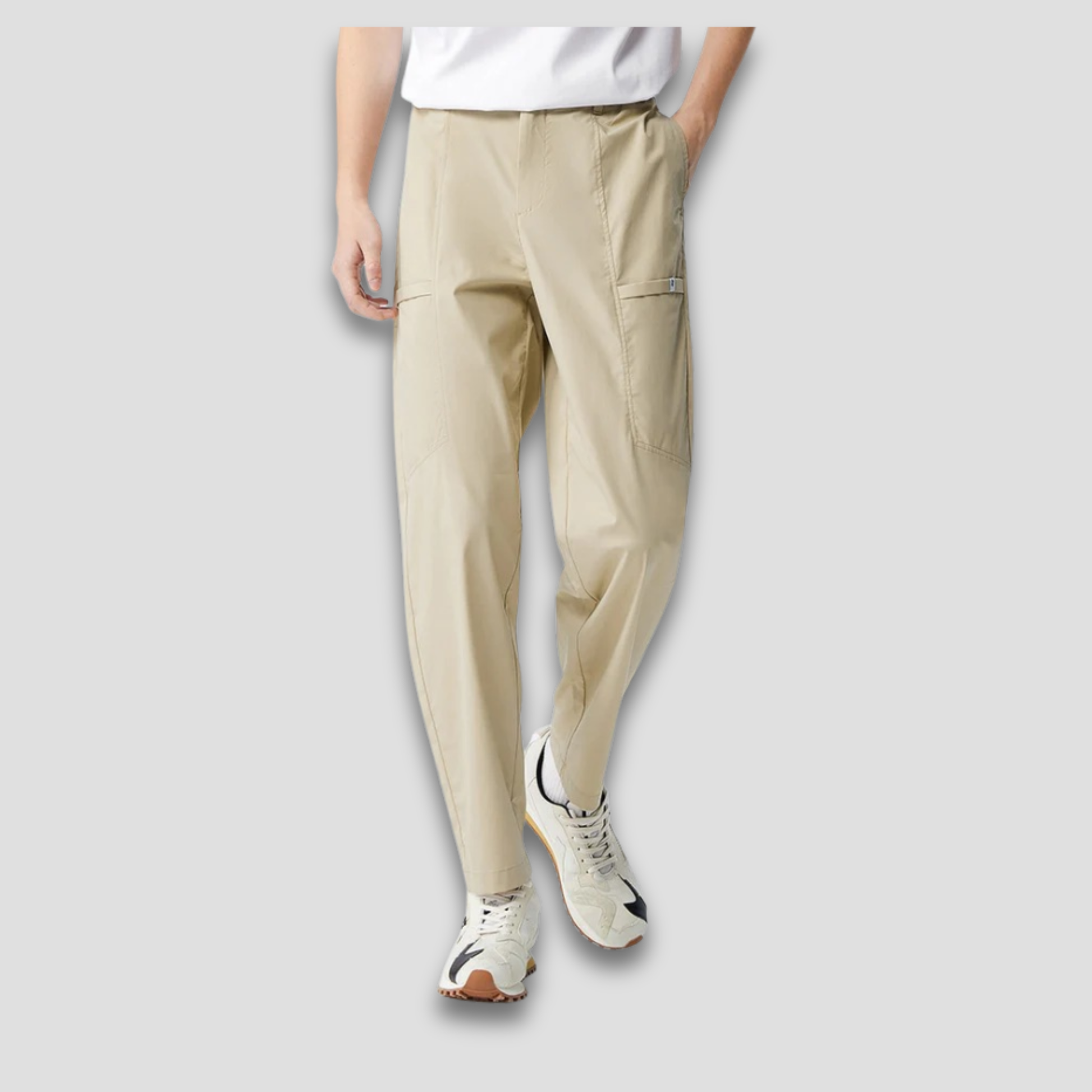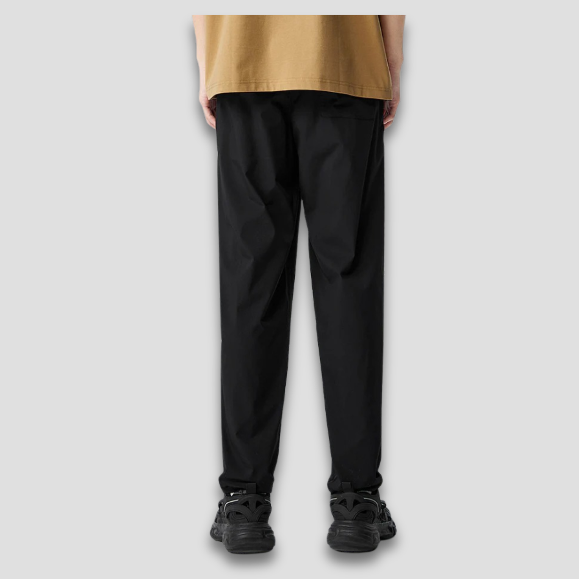 Den lette, avkjølende og antibakterielle stoffblandingen gjør denne buksen perfekt for varme dager, reiser, pendling, jobb eller hverdagsliv. Den løse, tapered passformen gir et stilig, strukturert uttrykk, mens den semi-elastiske midjen sørger for komfort som varer hele dagen.
