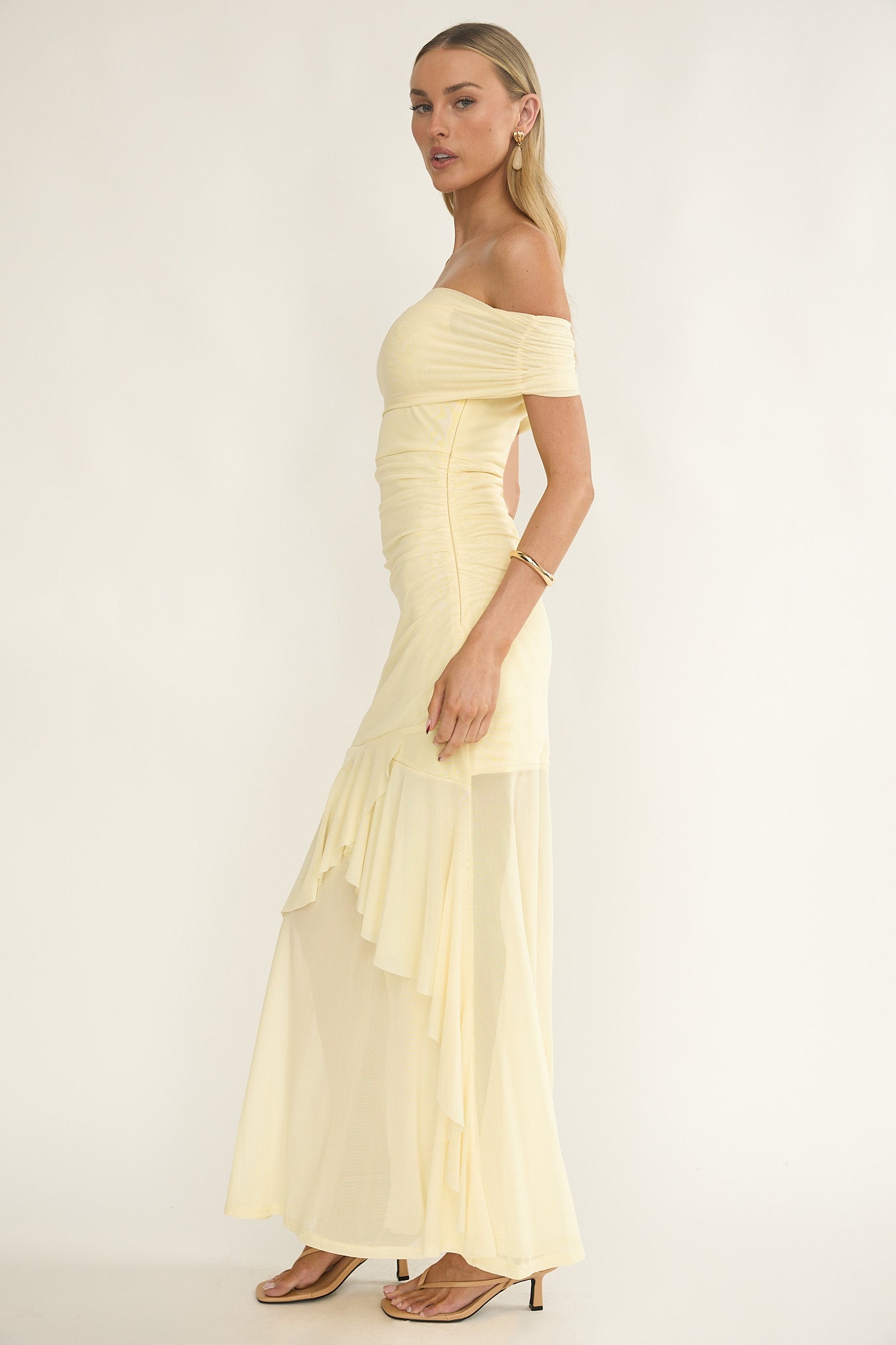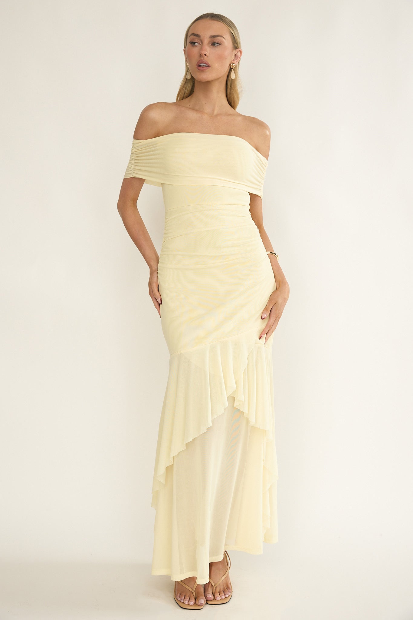 Føl deg som en ekte gudinne i vår fantastiske Kiarna Maxi Dress. Denne figurehugging kjolen med off-shoulder design og elegante ruché-detaljer vil garantert bli sentrum av oppmerksomheten på festen. Den lagdelte, figuredekkende silhuetten skaper en perfekt kombinasjon av glamour og komfort, slik at du kan skinne hele kvelden. Uansett om du skal på bursdagsfest, bryllup eller andre spesielle anledninger, vil denne kjolen gjøre deg til dronningen i rommet.