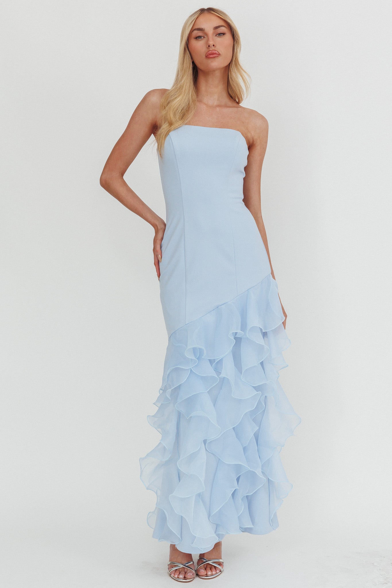 | Silhuett | Stroppeløs maxikjole |