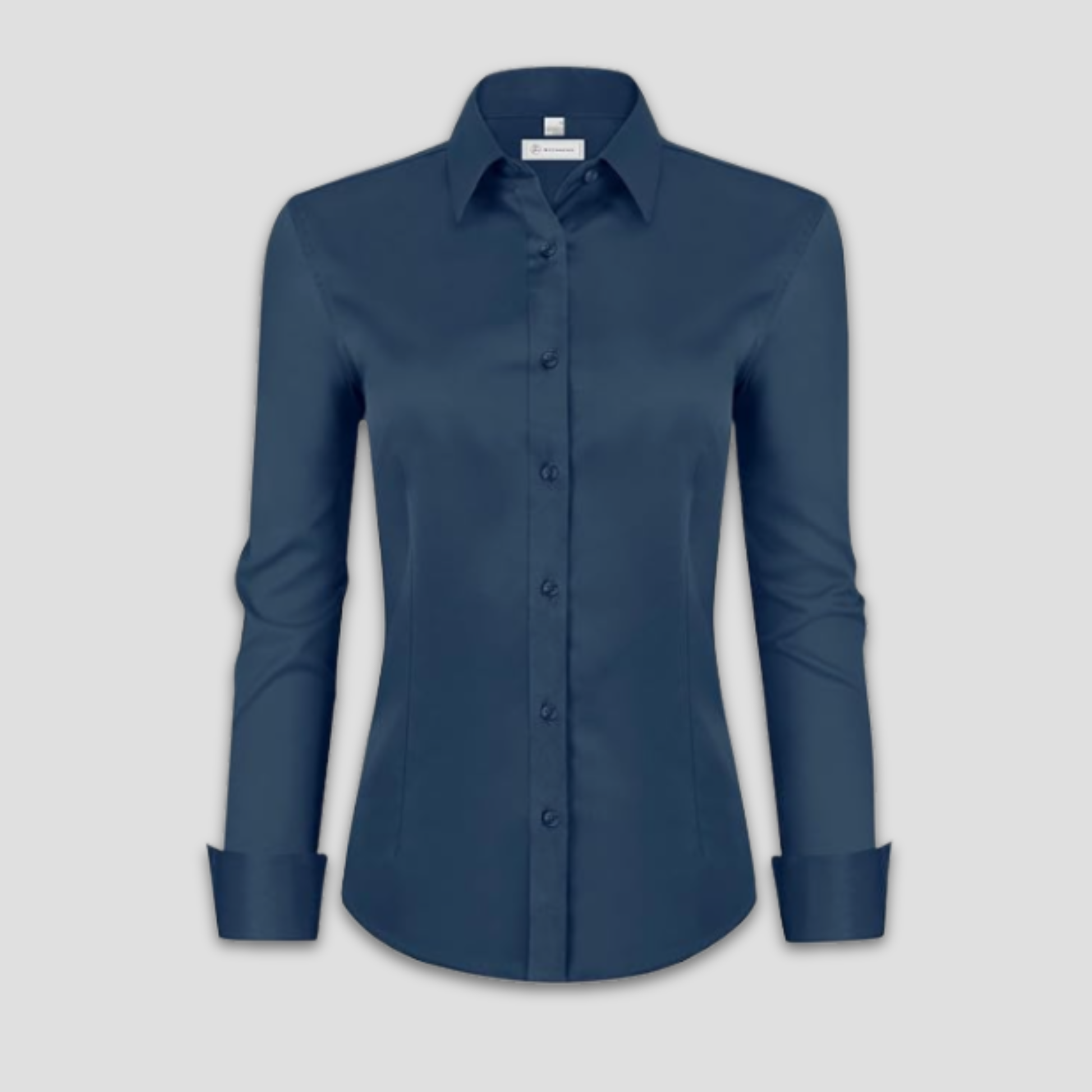 Dette er blusen for arbeidshverdagen din — en tidløs, klassisk skjorte som kombinerer profesjonell eleganse med komfort du faktisk kan bevege deg i. Den er laget for moderne kvinner som vil se velkledd ut uten å bruke ekstra tid på stryking, styling eller bekymre seg for stive, ukomfortable plagg.