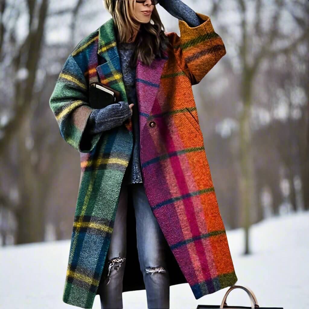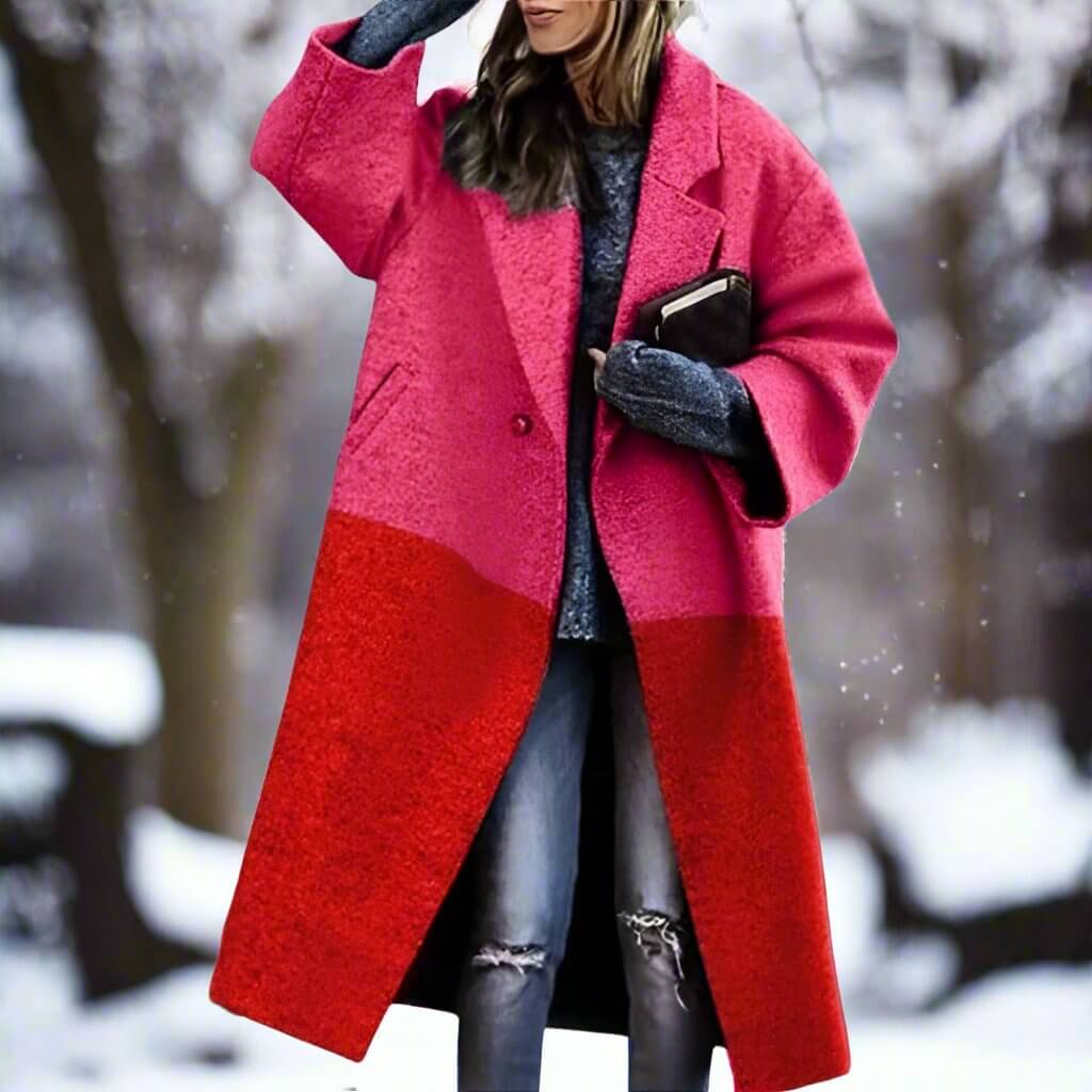 Oppdag vår Long Wool Coat – vinterens absolutte must-have for deg som vil kombinere funksjon og mote. Denne elegante kappen i fargerikt blokkdesign gir deg en unik, dristig stil som gjør deg synlig i vintermørket. Laget av 100% ull, tilbyr den maksimal varme og holdbarhet, slik at du kan navigere i de kaldeste dagene med stil og trygghet. Den oversized, avslappede passformen gjør den behagelig å bære, og den passer perfekt til både formelle anledninger og hverdagsbruk. Uansett vær, holder denne tunge, men lette kåpen deg varm, tørr og komfortabel — en investering i langvarig stil og funksjonalitet. La vinteren bli din scene med en kappe som garantert skiller seg ut.