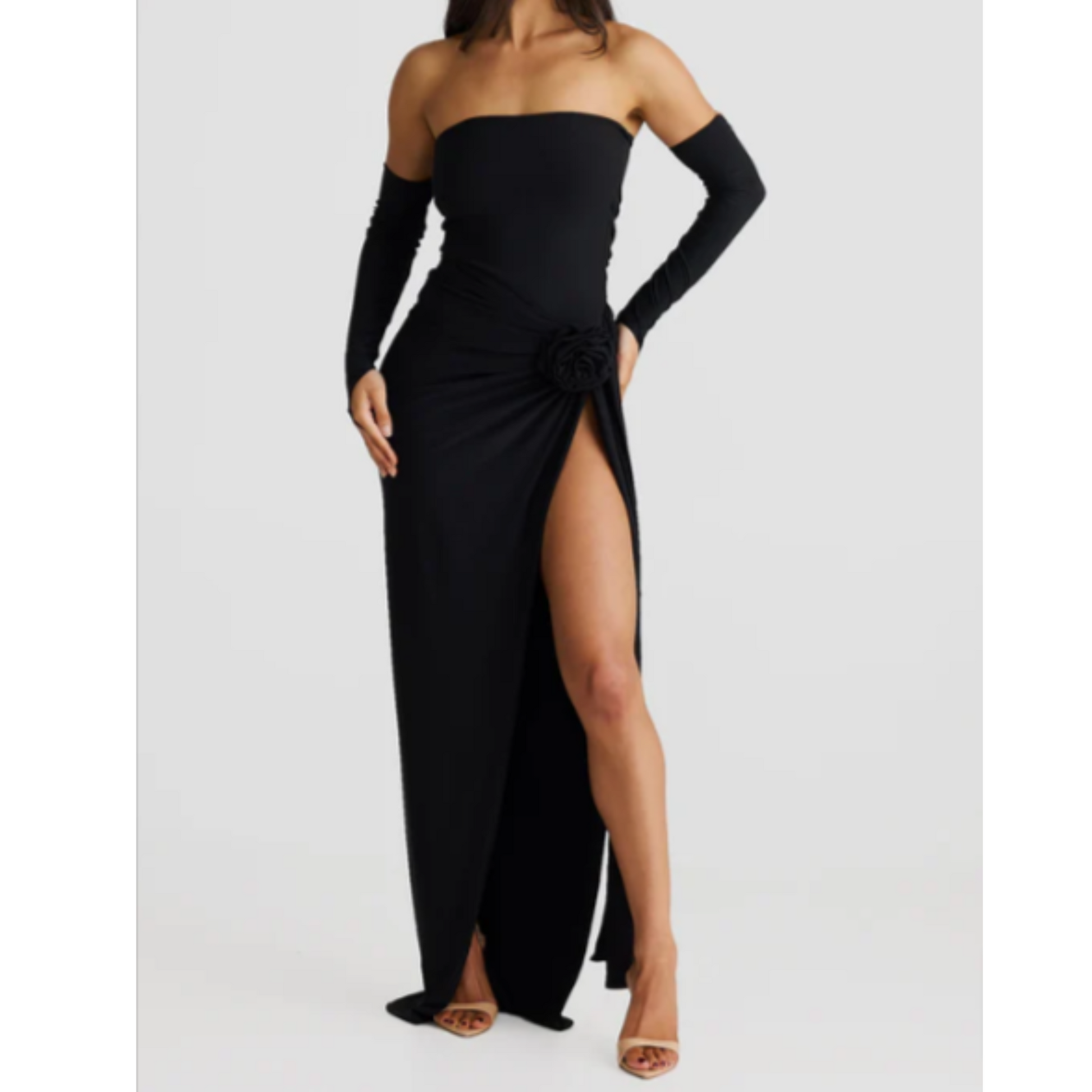 Maxiskjørt med høy slits: Skaper en strømlinjeformet, elegant silhuett samtidig som det tilfører dramatikk og bevegelse.