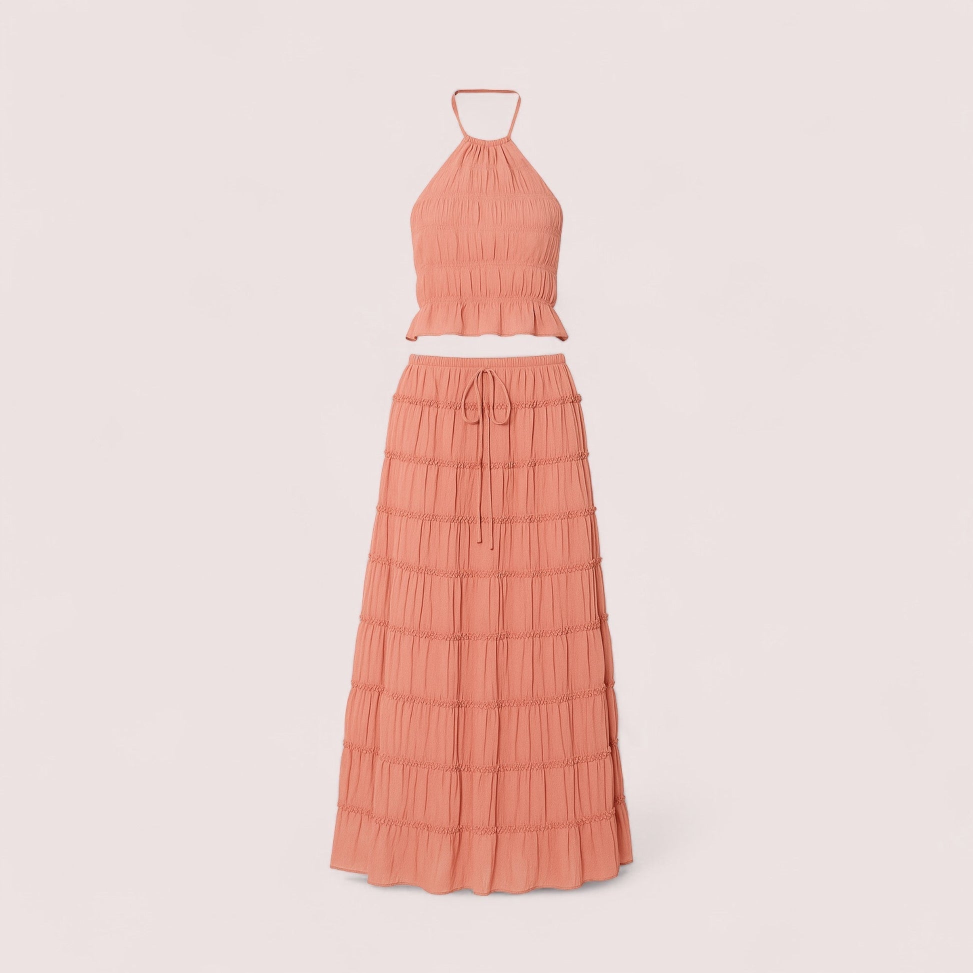 Opplev den perfekte kombinasjonen av lekfull femininitet og tidløs eleganse med Volangset. Dette to-delte settet i en sofistikert beige nyanse er laget for kvinner som ønsker å stråle av selvtillit og stil på varme sommerdager, ferier eller sosiale sammenkomster. De smakfulle volangene gir en grasiøs bevegelse og et feminint uttrykk, mens det lette, luftige stoffet holder deg komfortabel og elegant hele dagen.